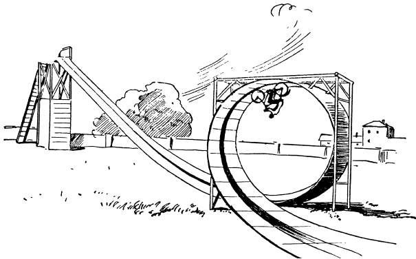 Это кажется очень страшным. На самом деле за велосипедиста можно не опасаться. Его, как и воду во вращающемся ведерке, надежно прижимает к дорожке действие инерции. Такую петлю ее изобретатель, цирковой артист Нуазет, назвал «чертовой».