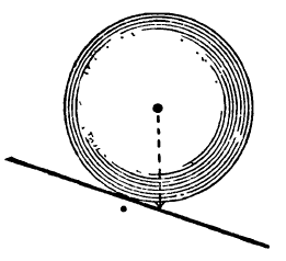 Центр тяжести находится у разных предметов в разных местах. Например, в шаре центр тяжести совпадает с геометрическим центром шара. Если шар лежит на горизонтальной плоскости (рис. 10, слева), то центр тяжести его находится как раз над точкой опоры шара на одной вертикали с нею. Шар при этом сам по себе никогда не может покатиться. Иначе обстоит дело, когда плоскость, на которой лежит шар, наклонна (рис. 10, справа). Центр тяжести не находится уже на одной вертикали с точкой опоры, и шар скатывается.