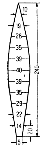 Монгольфьер. Нетрудно построить самому и монгольфьер из папиросной бумаги. Шар-монгольфьер склеивается из полосок папиросной бумаги, заостренных с обеих сторон. На рис. 13 показана выкройка одной части шара-монгольфьера, диаметром 1,5 метра.