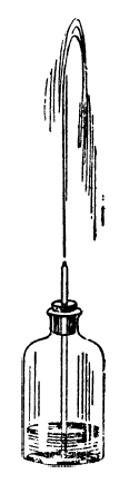 Для этого опыта нужны только аптекарская склянка, пробка и заостренная стеклянная трубка.