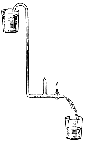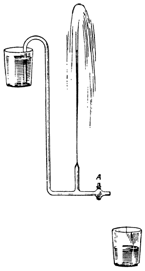 Попробуйте во время работы фонтана на секунду открыть кран А, а потом очень быстро закрыть его. Струя фонтана мгновенно брызнет выше верхнего сосуда, потом она опять опустится до своей обычной высоты, и, сколько бы раз вы ни открывали и закрывали кран, каждый раз при закрытии крана струя будет резко усиливаться.