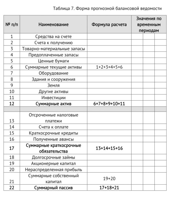 Прогнозная балансовая ведомость отражает финансовое состояние предприятия в определенный момент времени и показывает насколько устойчиво предприятие, реализующие данный проект.