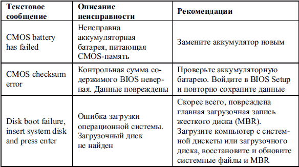 Появление текстовых сообщение в процессе тестирования системы – еще один вариант отслеживания возникшей неисправности. Вместе со звуковыми сигналами он позволяет эффективно определять почти все неисправности.