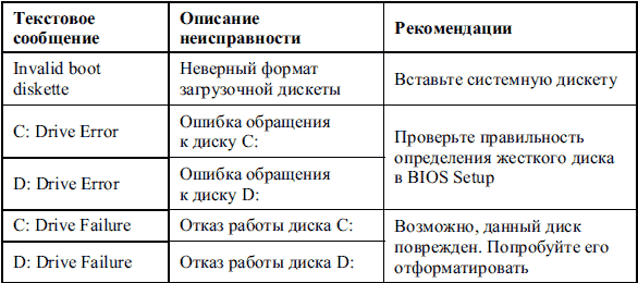 Таблица 1.4. Текстовые сообщения AwardBIOS