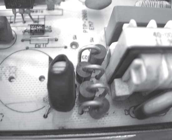 Высоковольтный выпрямительПрактически в любой электронной аппаратуре в качестве высоковольтного выпрямителя выступает сборка из четырех высоковольтных диодов, включенных по параллельной схеме, задача которой – превращение переменного напряжения в постоянное. Диоды могут находиться в закрытом пластмассовом корпусе, а могут располагаться рядом друг с другом на печатной плате блока питания (рис. 1.2).