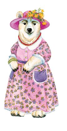 Все повернули головы в сторону двери и увидели белую собаку, наряженную в длинное платье с широкой юбкой и накладными карманами. На шее у нее висели ярко-красные бусы, лапу украшал зеленый браслет, а голову розовая шляпка с букетиком желтых цветов на полях.
