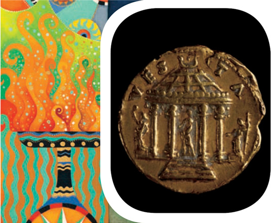 Hestia’s first memory was of blackness. And stifling heat. Then something tumbled in beside her, all wiggly. And another wiggly something. And two more. And, finally, a giant lump. She was crowded, poked and prodded, cramped. And so breathlessly, unrelentingly hot. She didn’t know she was trapped in her father Cronus’ belly. She didn’t know the wiggly somethings around her were her sisters Demeter and then Hera, and her brothers Hades and then Poseidon. She didn’t know the lump was a stone her father had been duped into swallowing in place of his sixth child. She knew only great discomfort and an undefined lack that gnawed at her spirit. Something was supposed to be happening. Someone was supposed to be there. Somehow everything was wrong, everything hurt. A vague fear lodged in her heart.