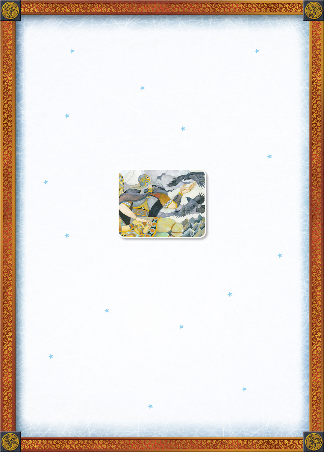 One-eyed Odin presides over Asgard, the world of the Aesir gods, as a guardian father—the Allfather. A flaming bridge, Bifrost, leads from Midgard, the world of the humans, up past the wall that surrounds Asgard.