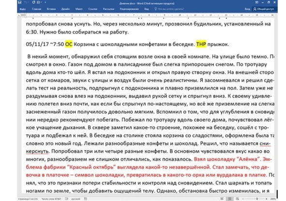 Скриншот 1: Пример записи опыта из моего дневника в редакторе Word