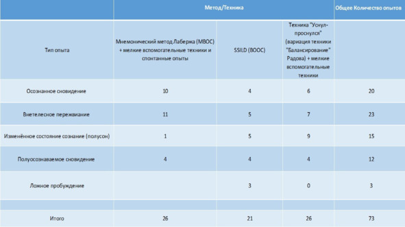 Диаграмма помогает отследить количество попаданий в ОС|СОН|ФАЗА, степень реалистичности, и если вы записываете опыты в дневнике, то можно легко по диаграмме найти интересующий опыт.