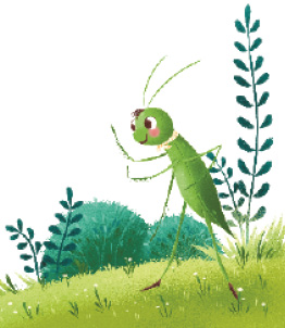Тут же и кузнечик Динька появился, тоже известный прыгун.