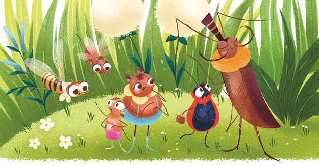 Весть о конкурсе быстро разнеслась по округе. С дальних концов двора и сада самые разные насекомые собрались!