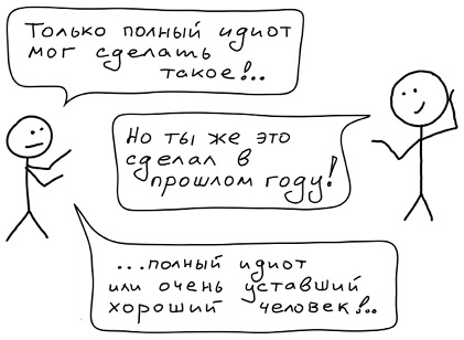 Однако если уровень стресса превышает определенный порог, то уже вне зависимости от положения румпеля когнитивной легкости обезьяна посылает свое решение на исполнение с воплями: «Аврал! Пожар! Горим-горим! Думать некогда, и так сойдет! Сейчас сделаем, а там разберемся…»