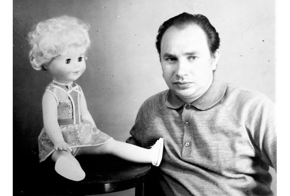 Н. В. Денисов с образцом своей куклы (из семейного архива Денисовых)