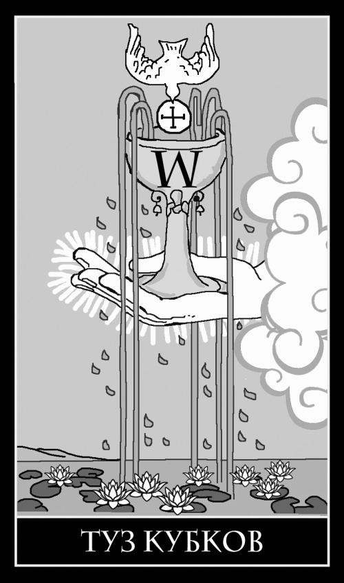 Струи воды, бьющие из Кубка, передают энергетику, заключенную в этой карте.