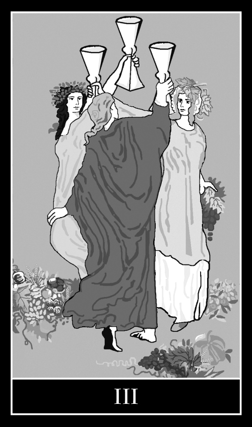 какие чувства у вас вызывает данный Аркан? Какие детали первыми вы приметили? Какие детали карты стали заметны не сразу? Как вы считаете, о чем говорит Аркан Тройка Кубков?