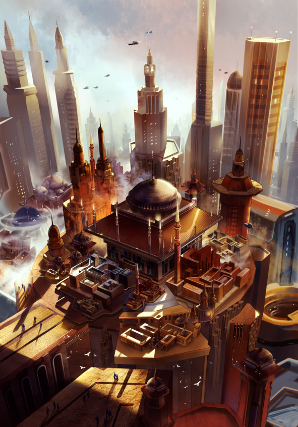 Единственным отличием этого города был космопорт, выстроенный в виде мечети и выделявшийся лишь гигантскими размерами куполов. Через него проходило умопомрачительное количество грузов, которые использовались для снабжения всего города населением в несколько миллиардов человек.