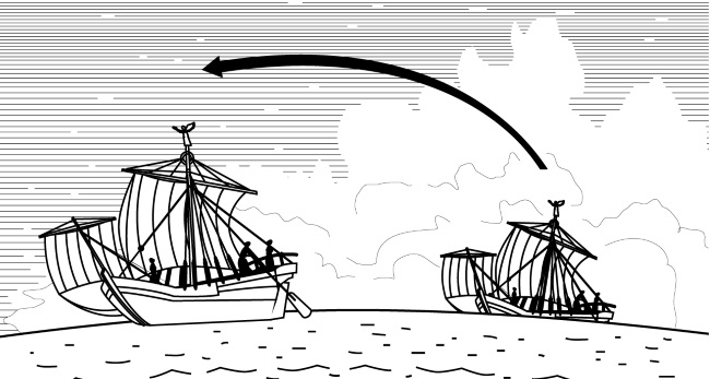 Любые мысленные построения и числовые расчеты проверяются опытом, или экспериментом. В IV веке до Р.Х. великий ученый Древней Греции македонянин Аристотель из города Стагиры привел целый ряд убедительных доказательств шарообразности Земли. Во-первых, он сослался на свидетельства моряков и рыбаков. Они давно заметили, что корабль появляется из-за горизонта постепенно: сначала видны мачты и паруса, а затем уже корпус судна. Это – наблюдение с берега. А наблюдатель, стоящий на палубе корабля, видит, как при подходе корабля к дальнему берегу сначала встают из моря вершины гор, затем башни маяков и сторожевые вышки, и только по мере приближения моряки видят берег с людьми и морскими судами, стоящими у причалов.