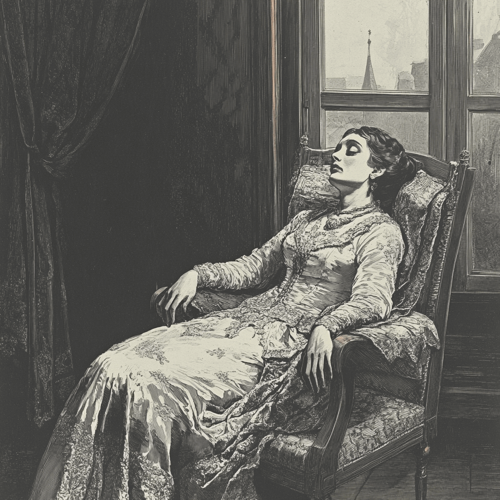 Наступило молчание. Взгляд ее подозрительно и раздражительно скользил по всем нашим лицам. Явилась Агаша, любимая ее горничная.
