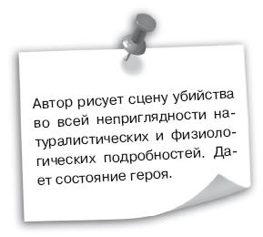 Старуха, как и всегда, была простоволосая. Светлые с проседью, жиденькие волосы ее, по обыкновению жирно смазанные маслом, были заплетены в крысиную косичку и подобраны под осколок роговой гребенки, торчавшей на ее затылке. Удар пришелся в самое темя, чему способствовал ее малый рост. Она вскрикнула, но очень слабо, и вдруг вся осела к полу, хотя и успела еще поднять обе руки к голове. В одной руке еще продолжала держать «заклад». Тут он изо всей силы ударил раз и другой, всё обухом и всё по темени. Кровь хлынула, как из опрокинутого стакана, и тело повалилось навзничь. Он отступил, дал упасть и тотчас же нагнулся к ее лицу; она была уже мертвая. Глаза были вытаращены, как будто хотели выпрыгнуть, а лоб и всё лицо были сморщены и искажены судорогой.