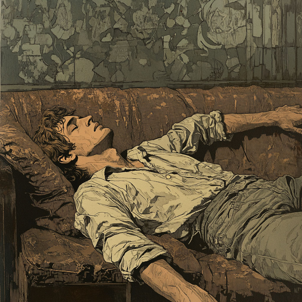Но все обошлось благополучно. Дверь в дворницкую была притворена, но не на замке, стало быть вероятнее всего было, что дворник дома. Но до того уже он потерял способность сообразить что-нибудь, что прямо подошел к дворницкой и растворил ее. Если бы дворник спросил его «что надо?» – он, может быть, так прямо и подал бы ему топор. Но дворника опять не было, и он успел уложить топор на прежнее место под скамью; даже поленом прикрыл по-прежнему. Никого, ни единой души, не встретил он потом до самой своей комнаты; хозяйкина дверь была заперта. Войдя к себе, он бросился на диван, так, как был. Он не спал, но был в забытьи. Если бы кто вошел тогда в его комнату, он бы тотчас же вскочил и закричал. Клочки и отрывки каких-то мыслей так и кишели в его голове; но он ни одной не мог схватить, ни на одной не мог остановиться, несмотря даже на усилия…