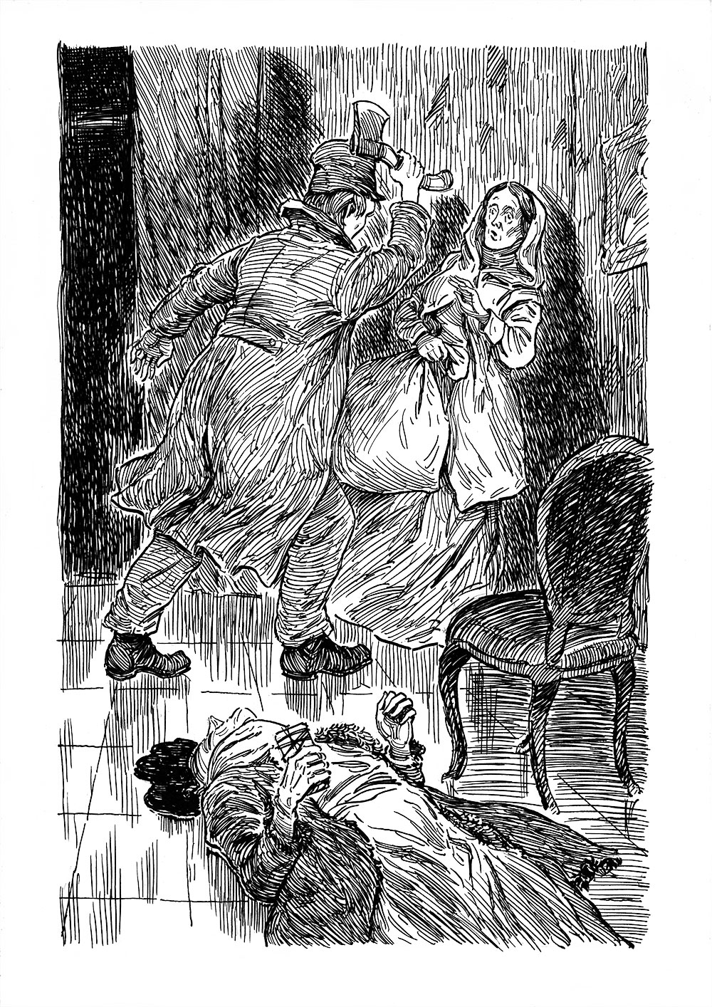 – Да что они там, дрыхнут или передушил их кто? Тррреклятые! – заревел он как из бочки. – Эй, Алена Ивановна, старая ведьма! Лизавета Ивановна, красота неописанная! Отворяйте! У, треклятые, спят они, что ли?