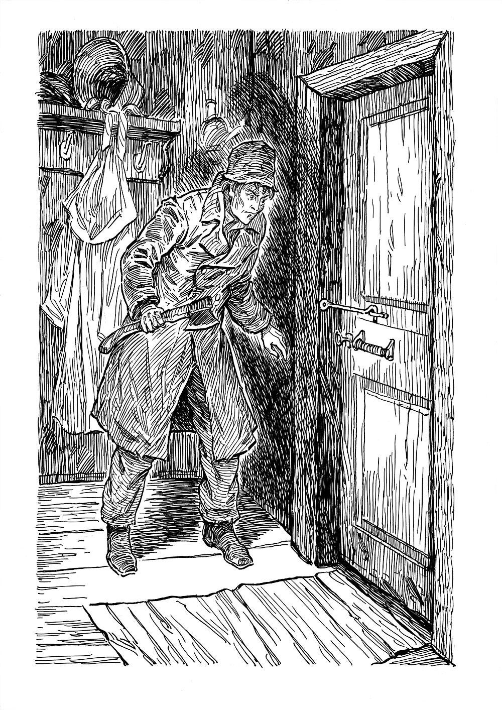 Он снял запор, отворил дверь и стал слушать на лестницу.