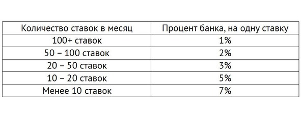 Ставя процент от банка, вы никогда не проиграете его полностью. Да, он может уменьшиться очень сильно, но, ставя процент, вы его не проиграете. Эти проценты актуальны для банка 500—5000$. При банке 5000—10 000$ рекомендуем ставить фиксированную величину 250—400$, даже если вы делаете менее 10-ти ставок в месяц. При этом ставить больше 1000$ на событие не рекомендуем, даже если банк вам позволяет.