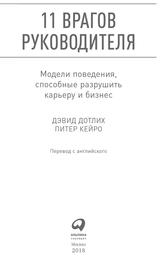 Среди прочего Дотлих и Кейро опираются на работы психолога Роберта Хогана, который глубоко и проницательно изучал «деструкторы лидерства». Как с готовностью признают сами авторы несколькими страницами ниже, эти исследования позволили им понять те формы поведения, которые они наблюдали.