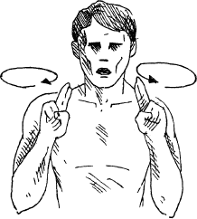 – Второе упражнение проще, – неумолимо продолжал Наставник, – локти опущены и неподвижны, пальцы держим вытянутыми вверх около плеч и делаем вращательные движения рукой от локтя, так чтобы вытянутые пальцы описывали круги в горизонтальной плоскости. Правая рука движется по часовой стрелке, левая – против. И не надо делать вид, как будто вы стекла протираете!