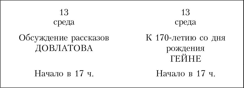 Фамилии были напечатаны одинаковым шрифтом. Поклонники Гейне собрались на втором этаже. Мои – на третьем. Мои – клянусь! – значительно преобладали.