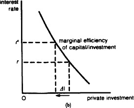 The term ‘crowding-out’ is also used in a broader sense to denote the effect of larger government expenditure in pre-empting national resources, leaving less for private consumption spending, private sector investment and for exports. Such real crowding-out would occur only to the extent that total national resources are fixed and fully employed so that expansion in public sector claims on resources contract the amount left for the private sector. Where unemployed resources can be brought into use, additional claims by both the public and private sectors can be met. See MONEY-SUPPLY/SPENDING LINKAGES, MARGINAL EFFICIENCY OF CAPITAL/INVESTMENT.