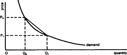 arc elasticity a rough measure of the responsiveness of DEMAND or SUPPLY to changes in PRICE, INCOME, etc. In the case of PRICE ELASTICITY OF DEMAND, it is the ratio of the percentage change in quantity demanded (Q) to the percentage change in price (P) over a price range such as P0 to P1 in Fig. 8. Arc elasticity of demand is expressed notationally as:
