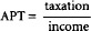 average propensity to tax (APT) the fraction of a given level of NATIONAL INCOME that is appropriated by the government in TAXATION: