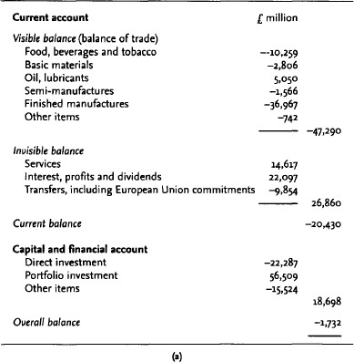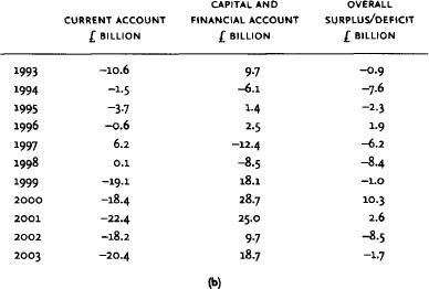 Fig. 13 Balance of payments. (a) The UK Balance of Payments, 2003. (b) UK Balance of Payments, 1993–2003. Source: UK Balance of Payments, Office for National Statistics (Pink Book), 2004.