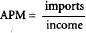 average propensity to import (APM) the fraction of a given level of NATIONAL INCOME that is spent on IMPORTS:
