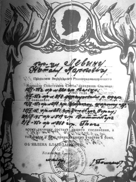 Благодарность от Верховного Главнокомандующего