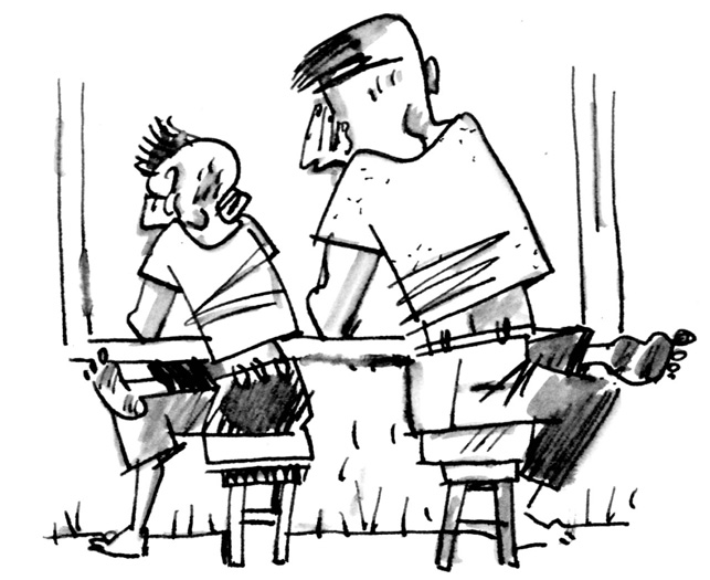 Обедают салатом из всего, что растет на огороде, холодным супом и серым дырявым хлебом, который нарезан толстенными ломтями. Николу клонит в сон. «Я встретил вас…» – напевает дядька, откинувшись на спинку стула.