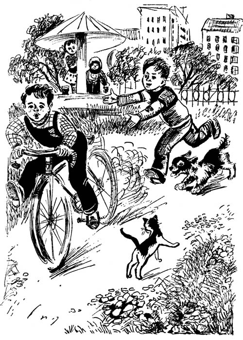 Но Мишка уже отстал. Тогда я проехал ещё круг и закричал: