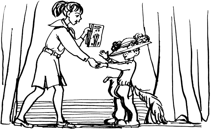 И я пошел на сцену, и когда входил на последнюю ступеньку, то споткнулся и чуть не упал. Все громко засмеялись, а Люся пожала мне руку и дала две книжки: «Дядю Степу» и «Сказки-загадки». Тут Борис Сергеевич заиграл туш, а я пошел со сцены. И когда сходил, то опять споткнулся и чуть не упал, и опять все засмеялись.