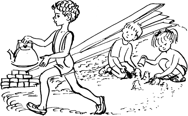 Нам было очень весело, и мы подружились с рабочими и даже помогали им ремонтировать дом: один раз я принес слесарю дяде Грише полный чайник кипятку, а второй раз Аленка показала монтерам, где у нас черный ход. И мы еще много помогали, только сейчас я уже не помню всего.