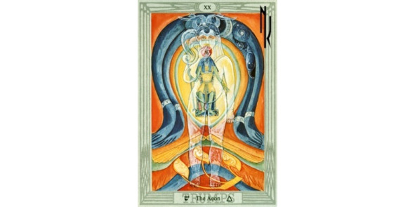 Новаторский подход Фриды Харрис заключается в том, что она нарисовала свою колоду в духе символизма. Здесь уже нет тех привычных персонажей из Таро Уэйта, есть какие-то мифологические существа или даже инопланетяне. Все сюжеты карт как будто находятся уже в абсолютно иной реальности: где-то во сне, в космосе или в астрале (рис. 13). Здесь реальное и потустороннее сливаются в один мир.