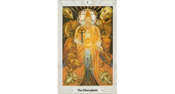 Именно поэтому колода намеренно создается абсолютно непохожей на Таро Уэйта во всем. Здесь вы увидите религиозный символизм только на Аркане Иерофант (рис. 15). Тем самым Алистер Кроули хотел бросить вызов оккультному обществу и показать ему, что оно вполне может существовать без моральных устоев, которые лишь ограничивали, по его мнению, способность овладеть сверхъестественной силой. Кроме того, он не разделял взглядов Ордена Золотой Зари на порядок Старших Арканов, поэтому поменял местами Силу и Правосудие по принципу французской школы Таро.