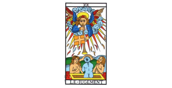 Если опираться на название Аркана Суд, то это как раз об изгнании Адама и Евы из рая на Землю. Люди научились отделять зло от добра, а значит, рассуждать и давать оценку. За это Господь судит их и наказывает. В качестве наказания они являются на неплодородную Землю и перестают быть бессмертными, появляется смерть. Частично карта Суд об этом же – о смерти, но на Аркане она показана как иное качество жизни, ведь это переход тонкой материи в грубую форму, и ее перерождение.