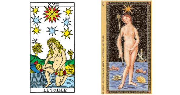 Рис. 27. Справа – Звезда из Марсельского Таро (Jodorowsky & Camoin), слева – из Золотого Флорентийского Таро