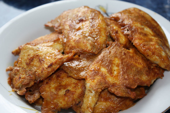 Грудку промываем и вытираем, нарезаем на кусочки. Слегка отбиваем кусочки.