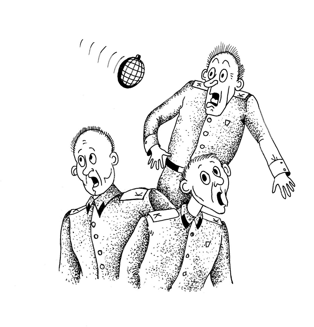 Ввиду дефицита финансов (а на вечер все скинулись из последних сил), а также мороза и нашего нелегального положения в городе, в самом начале мероприятия был жесткий уговор, что пьем вместе и возвращаемся в полк вместе. Никаких баб и провожаний. Этот договор все свято соблюдали. Однако перед самым закрытием к коллективу воззвал Вайнер: «Вы поглядите на этого гада!» Сил Силыч сидел в компании 2-х девиц, заказал им шампанское и явно собирался завершить вечер в их обществе. Попытки воззвать к его совести натыкались на традиционное Силовское : «Чо надо?! Пшел не хер!!!» Никаких аргументов и увещеваний он не слушал.