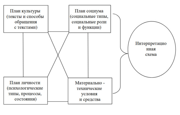 Анализируя те или иные конкретные формы культурной жизни, мы можем сосредотачиваться на тех или иных аспектах этого тотального взаимодействия, выявляя те или иные закономерности, характерные особенности, позитивные или проблемные моменты. Мы можем обнаруживать те или иные «проблемные» точки, формулировать проблемные ситуации, определять задачи и методы воздействия и т. п. Такой многогранный анализ был и остается большой редкостью. На практике же обычно ограничивались воздействием на (воспитательное воздействие текстов культуры) и проблемами блока (материальная база), развитие которой нередко воспринималось в качестве некой панацеи. При этом сам блок рассматривался крайне односторонне, в средствиальном ключе, при полном забвении смыслового (символического) аспекта. [1] [2] [4] [4]