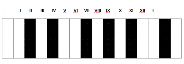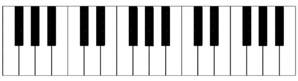 А теперь сделаем еще один решительный шаг в сторону упрощения (в сторону абстрагирования от непонятных пока делателей) и уберем различия в цвете, сделав все клавиши (все элементы нашей шкалы) белыми: