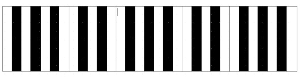 Попробуем в качестве мысленного эксперимента взглянуть на нее глазами человека, который вообще никогда не занимался музыкой, не знает нот и в глаза не видел ни рояля (пианино), ни аккордеона, ни других инструментов с подобной клавиатурой. И давайте для начала уберем различия между черными и белыми клавишами, касающиеся их формы (ведь мы, согласно условиям эксперимента, ничего не знаем об их значении, и они нас будут только запутывать). Вот, что у нас получится: